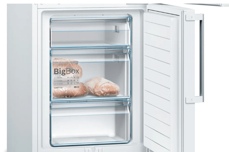 Bosch Køle-/fryseskab med en kølekapacitet til 214 L og frysekapacitet på 94 L. Læs hele beskrivelsen